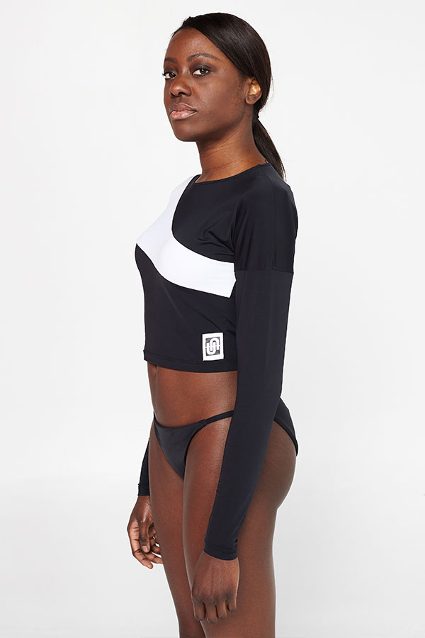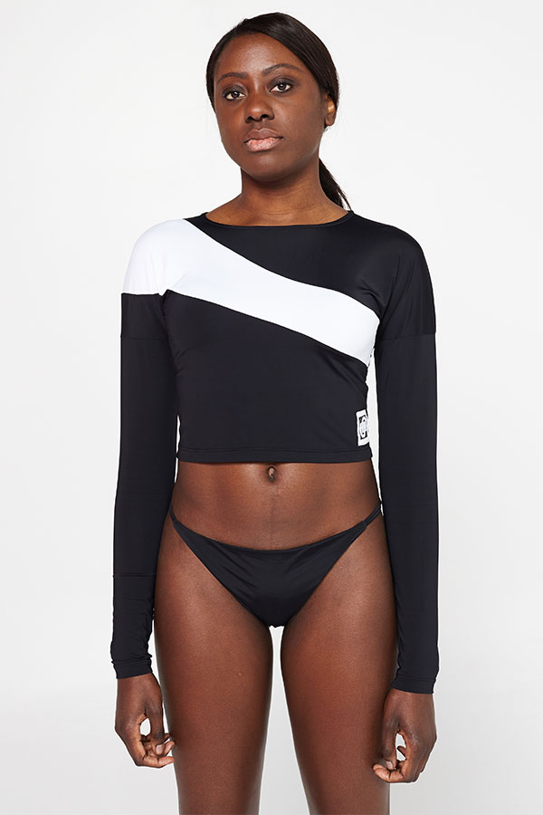 بدلة لركوب الامواج كم طويل سوداء , مزدوجة اللون.