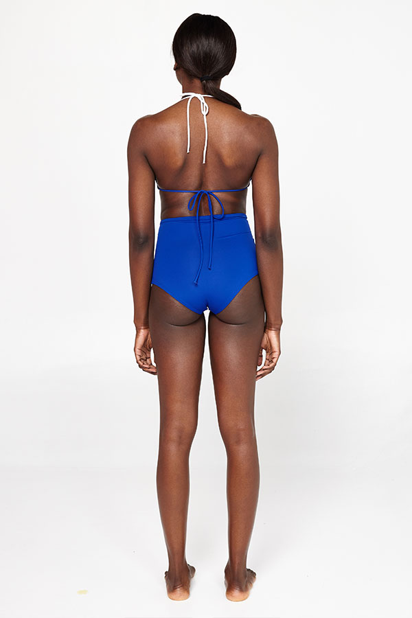 بيكيني البطل الأزرق ، خصر عالى. شرائط متداخلة الالوان.